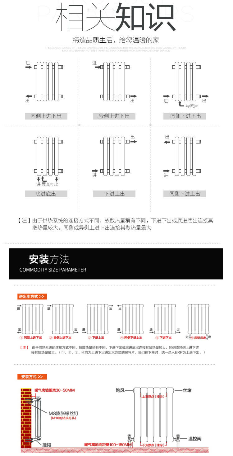 在銅鋁復(fù)合散熱器結(jié)構(gòu)相同的基礎(chǔ)上用鋼管代替銅管,降低了成本。承壓能力強(qiáng),散熱效果好,使用壽命長(zhǎng)(可與供暖系統(tǒng)管材壽命相同)。外表采用環(huán)保粉末靜電噴塑處理,無放射性元素、無異味、環(huán)保、安全、色彩絢麗、造型典雅,裝飾性強(qiáng)。外表及內(nèi)腔潔凈,使用分戶計(jì)量的采暖方式。